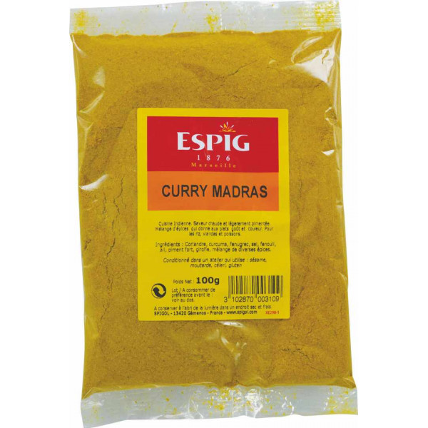 Ingrédients : coriandre, curcuma, fenugrec, sel (4%), fenouil, ail, piment fort, girofle, mélange de diverses épices.